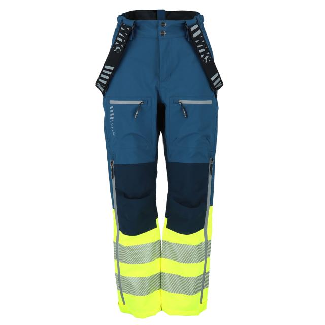 Husky Shell Pant High Vis er en vanntett og ventilerende bukse fylt med detaljer som trengs for en håndverksbukse. Formsydd fasong med elastisk linning, avtagbare stropper og hemper for belte. Buksen har formsydde knær med tynn padding, og forsterket parti som tåler skarpe kanter. Flere lommer i front og bak - alle med glidelås. Lang toveis glidelås fra ankel til midt på lår med kile og reguleringsmuligheter ved ankel. Lomme til meterstokk/kniv på høyre lår. 7cm brede refleksbånd rundt ankel og fluoriserende materiale for synlighet. Kl. 1.