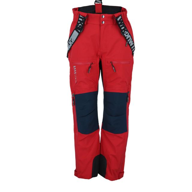 Husky Shell pant er en vanntett og ventilerende bukse fylt med detaljer som trengs for en håndverksbukse. Formsydd fasong med elastisk linning, avtagbare stropper og hemper for belte. Buksen har formsydde knær med tynn padding, og forsterket parti som tåler skarpe kanter. Flere lommer i front og bak - alle med glidelås. Lang toveis glidelås fra ankel til midt på lår med kile og reguleringsmuligheter ved ankel. Lomme til meterstokk/kniv på høyre lår.