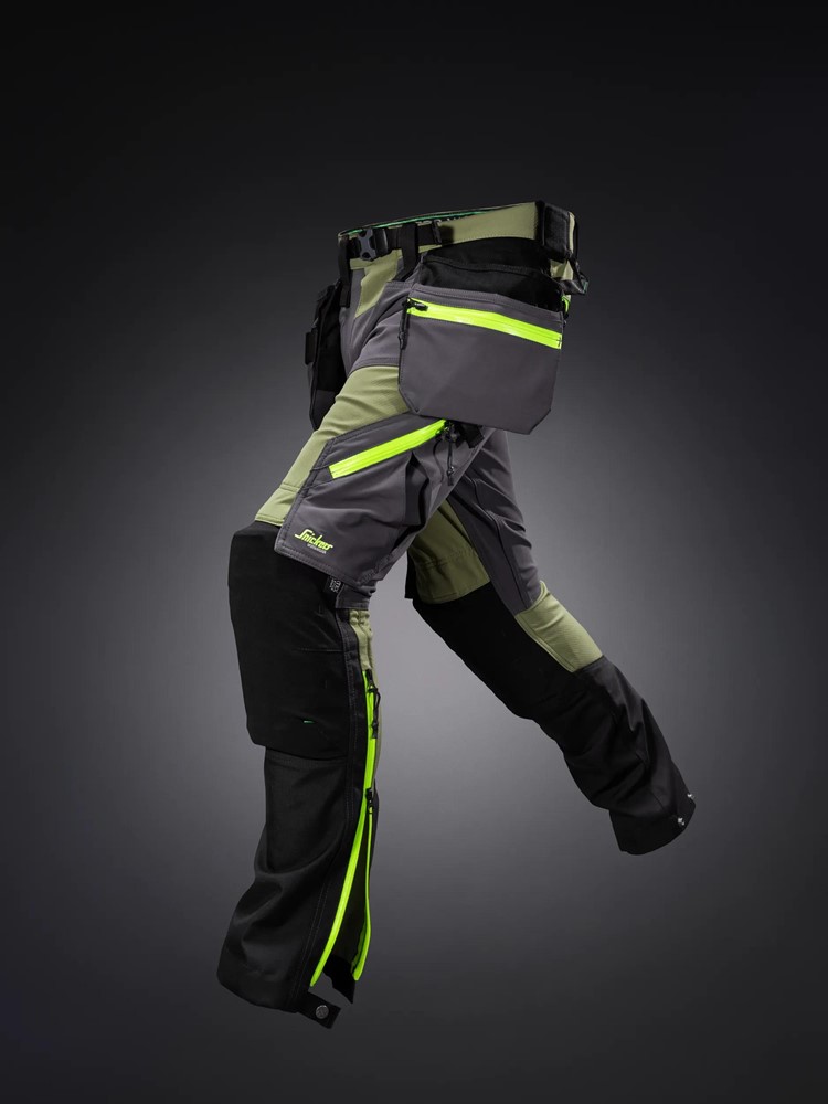 6940 FlexiWork, Softshell Stretchbukse+ med hylsterlommer Khaki Green