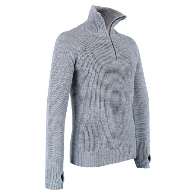 Flint er en varm ull genser som er strikket med tanke på å gi mye luft i plagget. Dette for å oppnå best mulig varmeeffekt, da luften i plagget er isolerende. Plagg i ull varmer selv i fuktig tilstand, og er derfor optimalt til bruk ved varierende fysisk intensitet. Genseren har høy hals med glidelås i front, lange ermer med tommelfingerhull, og en kroppsnær fasong som gjør denne genseren perfekt som et mellomlag.