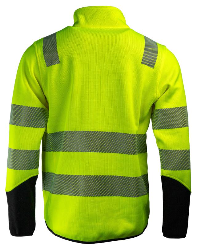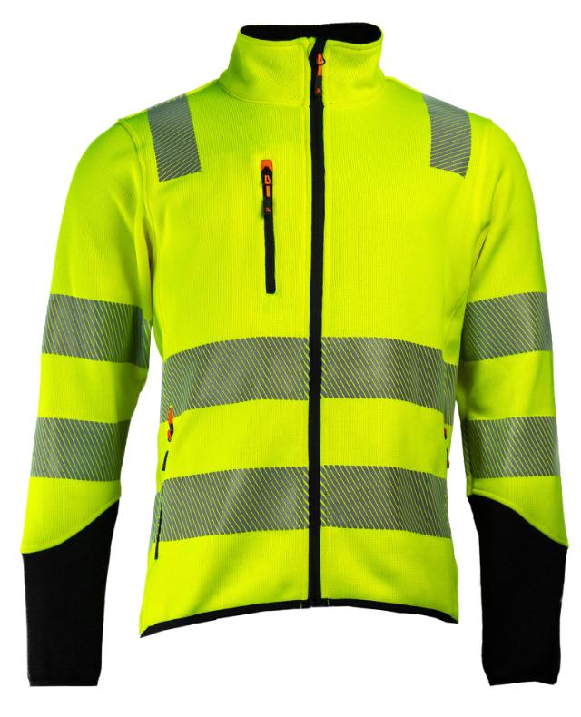 Tor-jakken er laget for deg som vil ha varme, synlighet og komfort pakket inn i én og samme pakke. Den strikkede fleeceoverflaten gir et moderne uttrykk, mens materialet i resirkulert polyester sørger for at jakken både er slitesterk og mer bærekraftig. Jakken er sertifisert etter EN 20471 klasse 3, så du er godt synlig uansett arbeidsmiljø. De stiplede refleksene øker bevegeligheten og gjør helhetsinntrykket mer stilrent enn tradisjonelle blokkerte refleksfelt. For oppbevaring får du to romslige glidelåslommer i sidene, pluss en praktisk brystlomme med glidelås på høyre side. Venstre bryst er bevisst holdt rent og klart for profilering. Sorte kontrastdetaljer på armene gir jakken et tøffere og mer teknisk uttrykk — perfekt for deg som vil se like skarp ut som du jobber.
