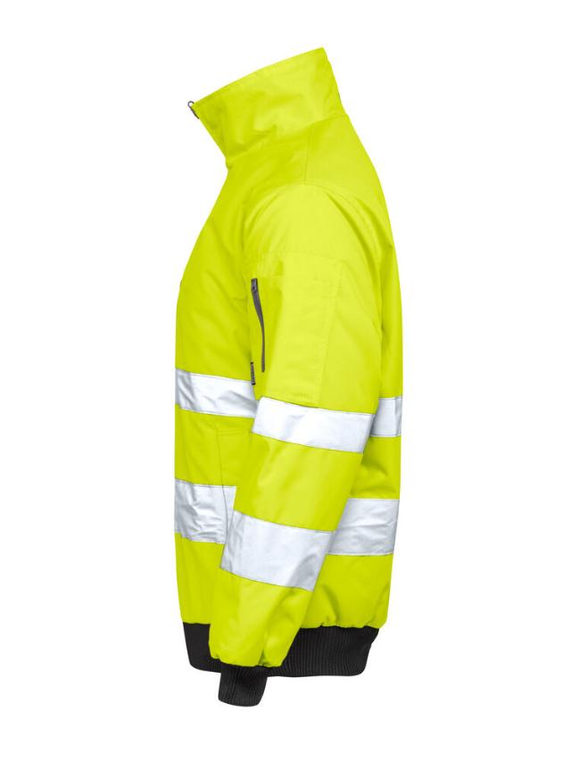Pilotjakke i slitesterk vannavstøtende polyester med smidig quiltfôr. Mykt teddyfôr i kragen. Brystlommer og ermelomme med glidelås. ID-kortholder i brystlommen. Frontlommer med trykknapp. Innerlomme med rom for mobiltelefon. Sertifisert i varselklasse 3 ifølge EN ISO 20471.