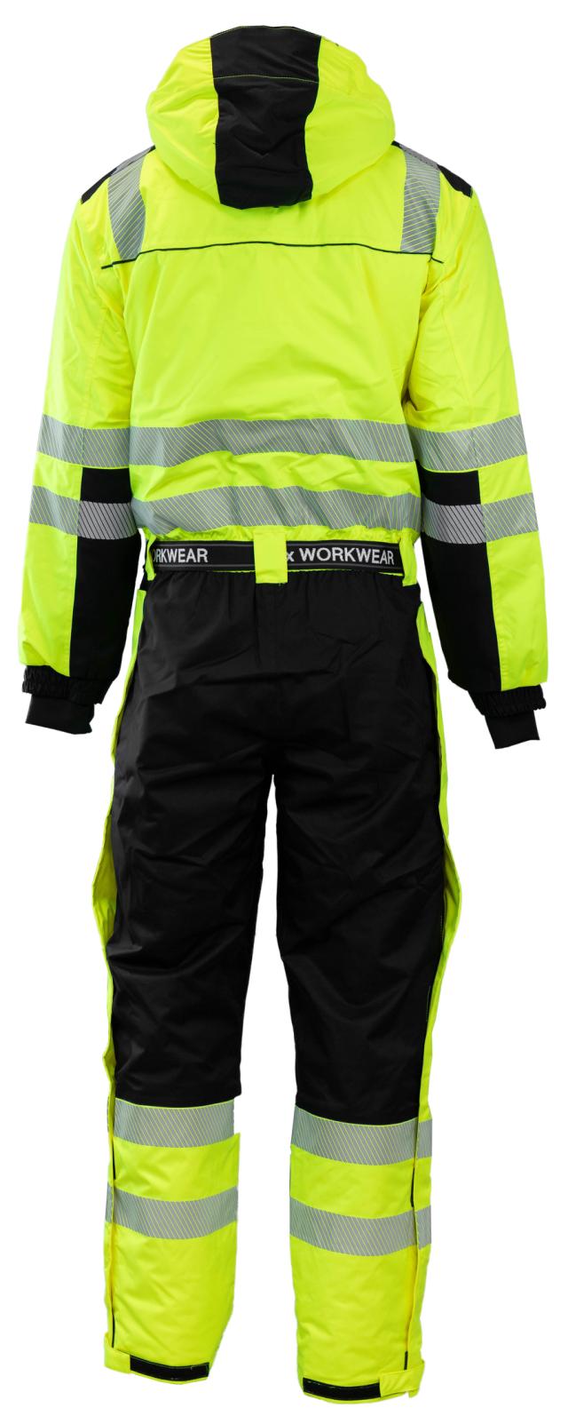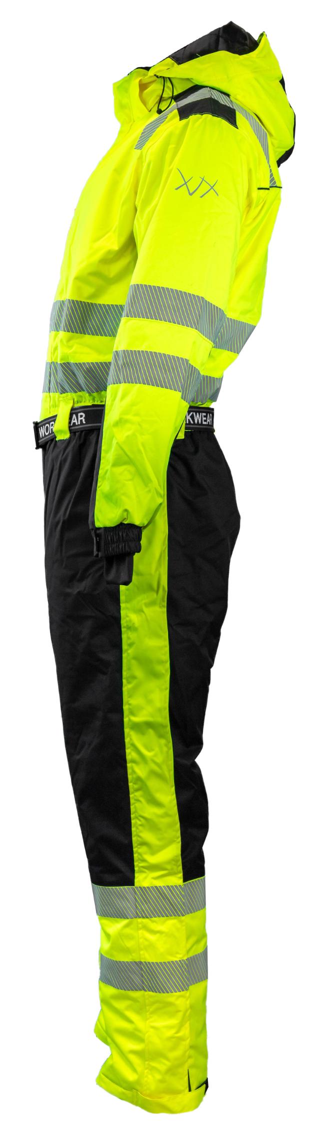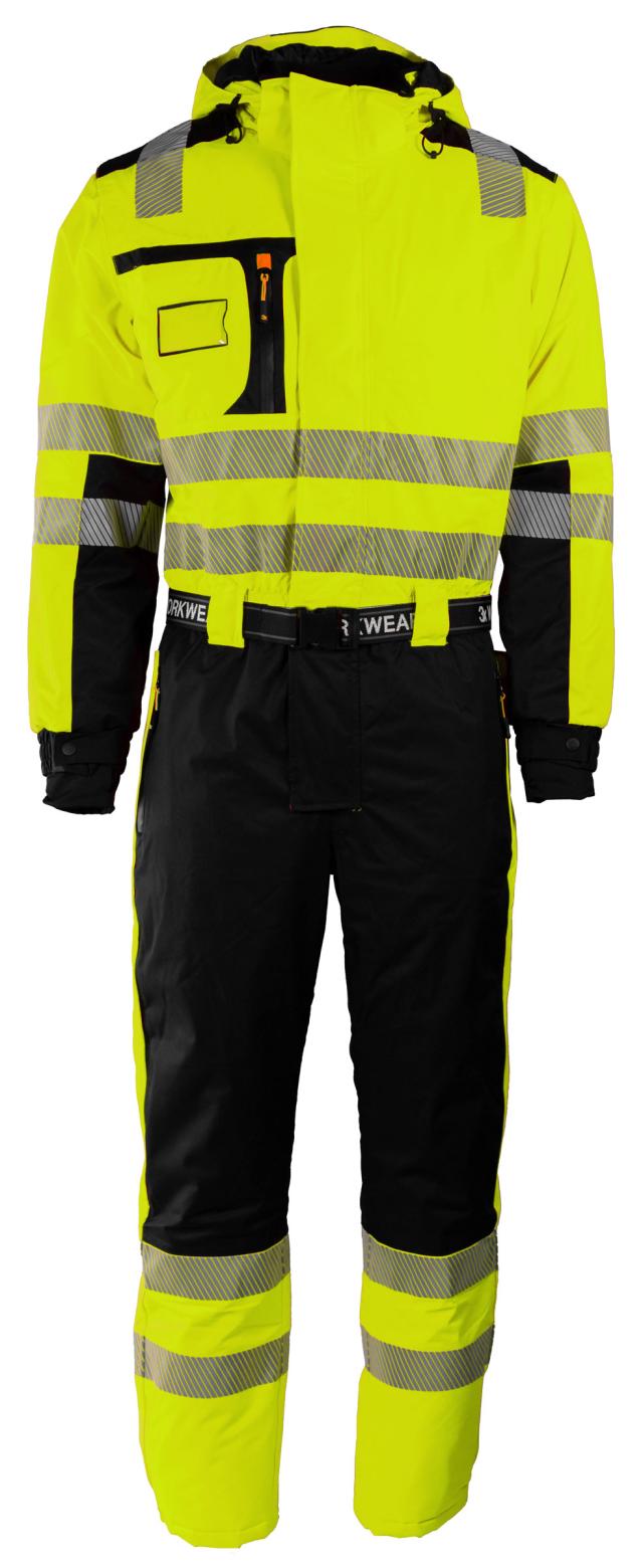 Den fluoriserende fargen med kontrastfelt i sort sikrer maksimal synlighet, og kjeledressen er sertifisert i henhold til EN 20471 klasse 3. Den ergonomiske passformen gir god bevegelsesfrihet, samtidig som praktiske lommer gir enkel oppbevaring av nødvendig utstyr. Dette er en solid og funksjonell kjeledress for deg som trenger både varme, værbeskyttelse og synlighet i én og samme løsning.