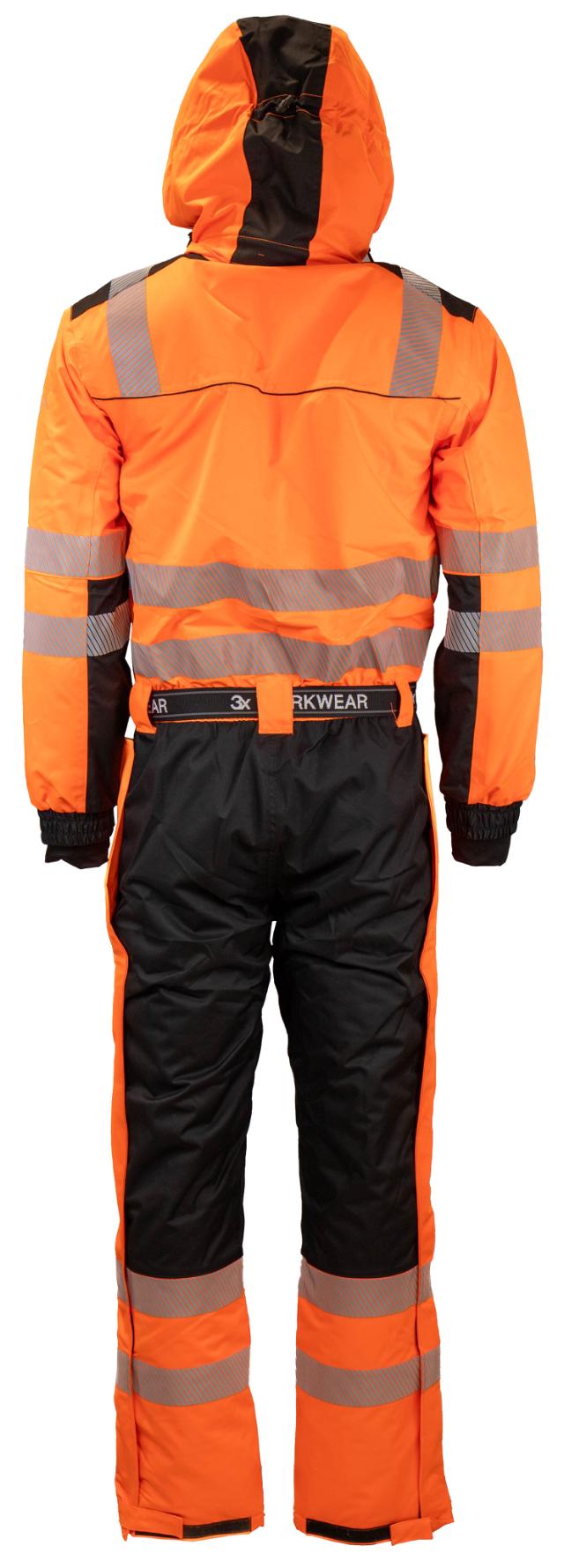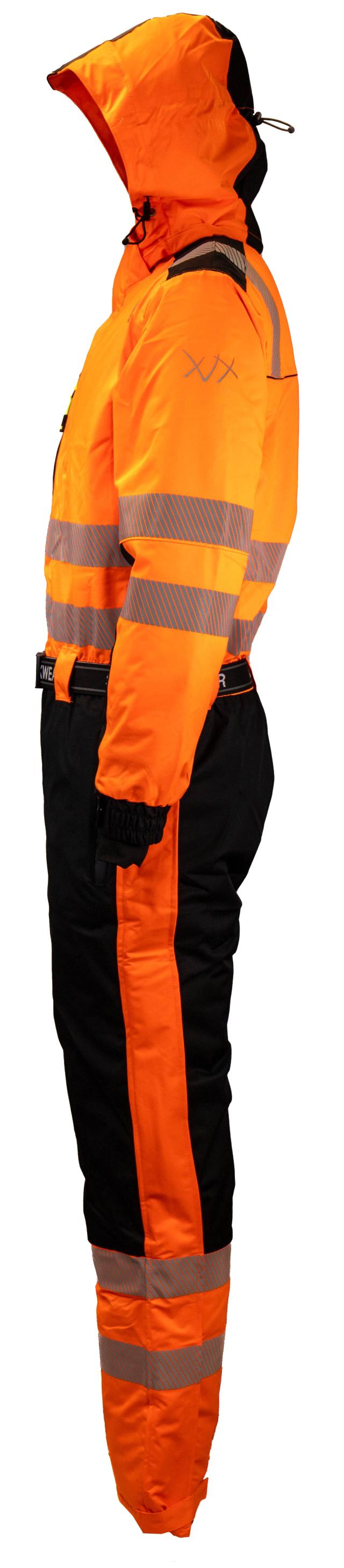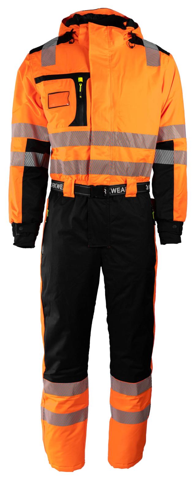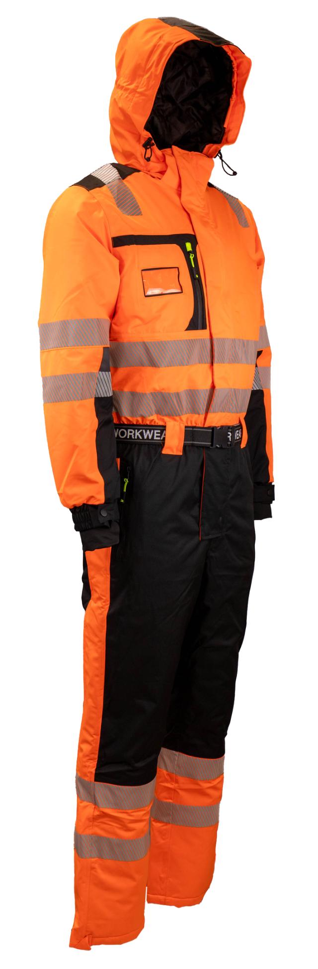Den fluoriserende fargen med kontrastfelt i sort sikrer maksimal synlighet, og kjeledressen er sertifisert i henhold til EN 20471 klasse 3. Den ergonomiske passformen gir god bevegelsesfrihet, samtidig som praktiske lommer gir enkel oppbevaring av nødvendig utstyr. Dette er en solid og funksjonell kjeledress for deg som trenger både varme, værbeskyttelse og synlighet i én og samme løsning.