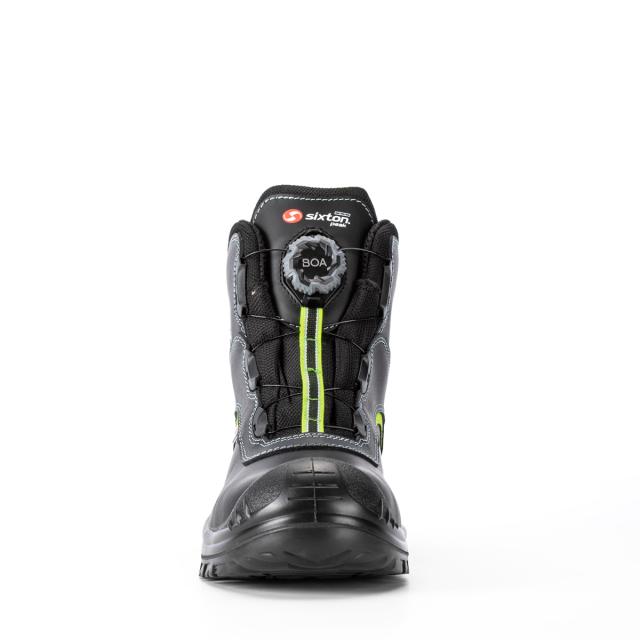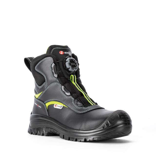 Dette er en verneskolett designet for komfort og sikkerhet, med en bred passform som gir god støtte. Den har en slitesterk to-lags såle med støtdempende PU mellomsåle og en robust PU yttersåle som sikrer godt grep på underlaget. For optimal støtte og stabilitet er sålen utstyrt med STABIL ACTIVE gelenk. Overdelen er laget av mykt, vannavvisende fullnarvet okseskinn og har en polstret pløse for ekstra komfort. BOA®-snøresystemet gjør det enkelt å ta skoen av og på, og sørger for en presis tilpasning til foten. Innersålen benytter FLYFIT-teknologi som effektivt absorberer svette og tørker raskt. Bevegelsesdrevne luftekanaler i innersålen øker luftsirkulasjonen, mens en støtdempende kjerne i SXT PU gir ekstra komfort. Skoen har også en spikertrampsåle og tåvernhette i kompositt, samt forsterket tå med PU.