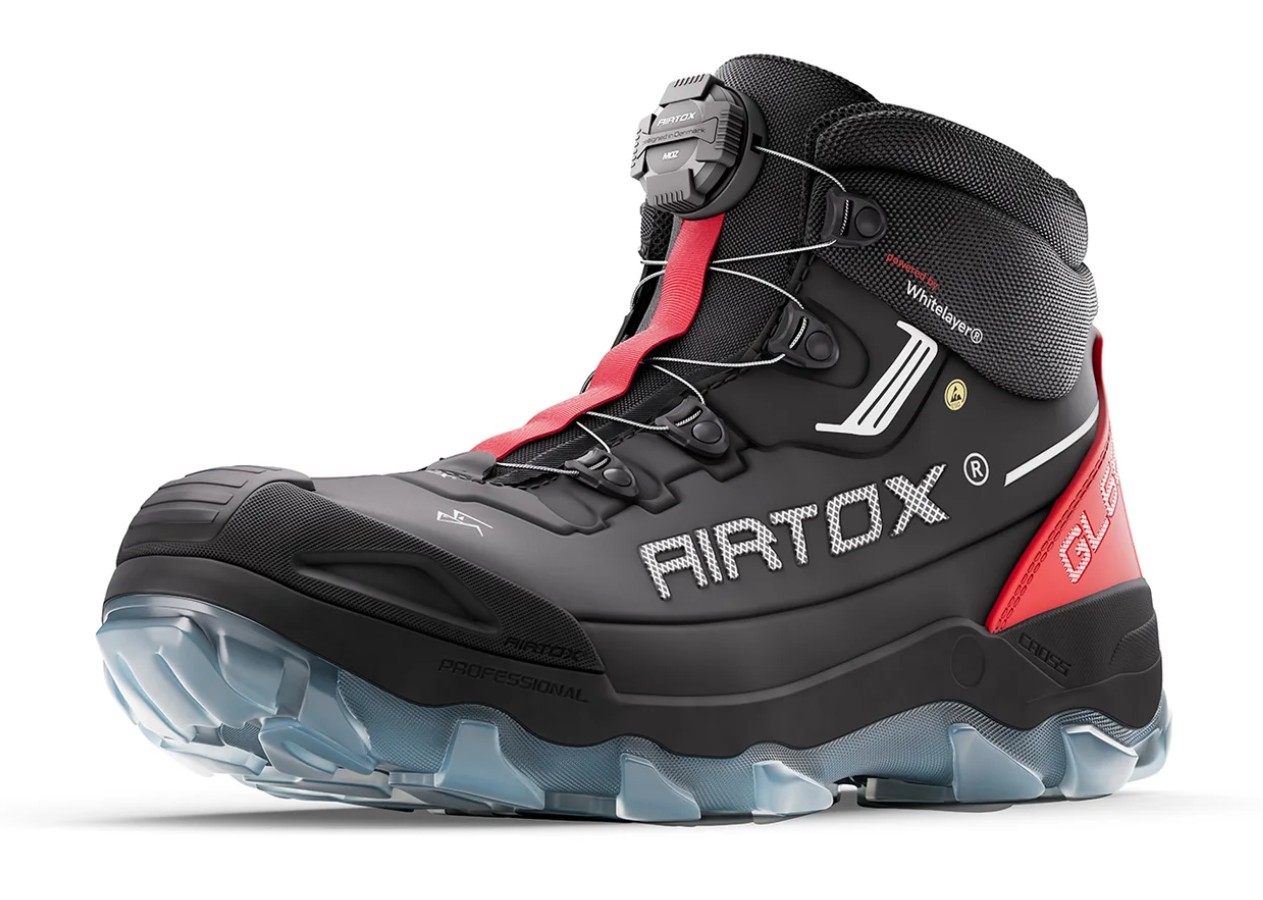 NY, lett sikkerhetsstøvel med grov såleprofil i gjennomsiktig TPU. En høyteknologisk sikkerhetsstøvel designet med banebrytende funksjoner for maksimal ytelse og komfort. Kjernen er den revolusjonerende Whitelayer®-spikertramp – like sterk som stål, men myk som stoff – som tilbyr enestående fleksibilitet og lett sikkerhet. Støvelen er utstyrt med en spesialdesignet ergonomisk tåhette i aluminium, som sikrer både beskyttelse og en sømløs, komfortabel og bred passform. Overdelen er laget av et enkelt stykke Nanotech-mikrofiber, noe som gjør den lett, slitesterk og vannavstøtende.Sålen er laget med en avansert teknologi, der materialet i flytende form sprayes på skoen, samtidig som luft integreres ved hjelp av den nyeste og mest avanserte robotteknologien på markedet. Med sin perfekte passform og robuste konstruksjon er denne støvelen bygget for å håndtere praktisk talt ethvert miljø med letthet.