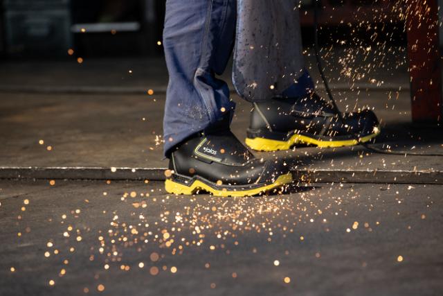 Vår mest komfortable og slitesterke sveisestøvel med optimal beskyttelse. BOA® Fit System gir perfekt passform, og PU-belagt skinn gir ekstra beskyttelse. Spesialbehandlet skinn med varmebestandig para-aramidtråd i sømmene, som gir varmebestandighet opptil 400 °C i 30 minutter. Den olje- og varmebestandige yttersålen i nitril gir utmerket grep, og JALAS® vernetå i kompositt, spikertrampbeskyttelse i stål og doble støtdempingssoner i PORON® XRD® bidrar til å forebygge skader.