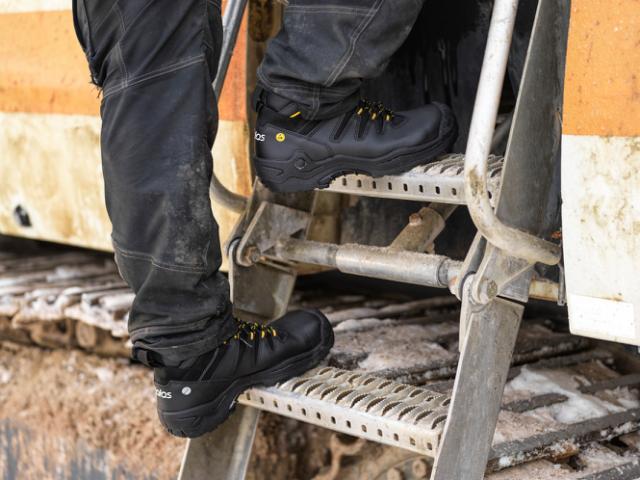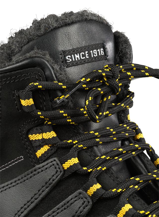 Ekstra varm og lett middels høy vernesko for kalde forhold. Metallfri med fôr i polyesterpels og overdel i PU-belagt skinn. Spikertrampbeskyttelse i plasmabehandlet komposittekstil (PTC), tåhette i kompositt og PU-yttersåle. Perfekt for flyplassarbeid om vinteren.