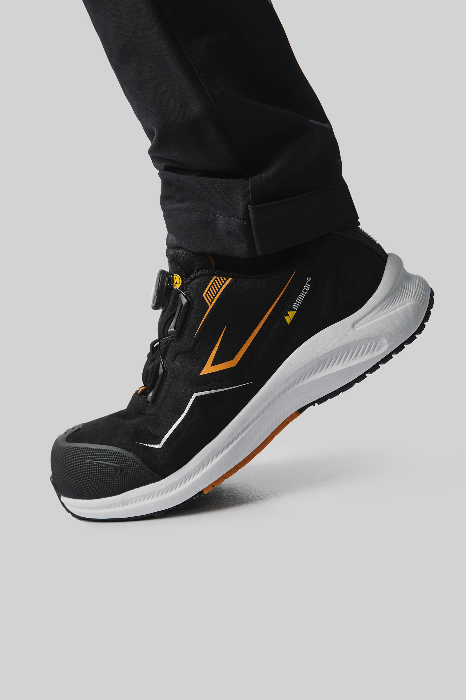 Recharge One vernesko har en bred passform med tåhette i kompositt og APT-spikebeskyttelse. Overdel i mikrofiber med gummiforsterkning. Utstyrt med EVA-mellomsåle, yttersåle i nitrilgummi og BOA® Fit System. Metallfri og ESD-godkjent.