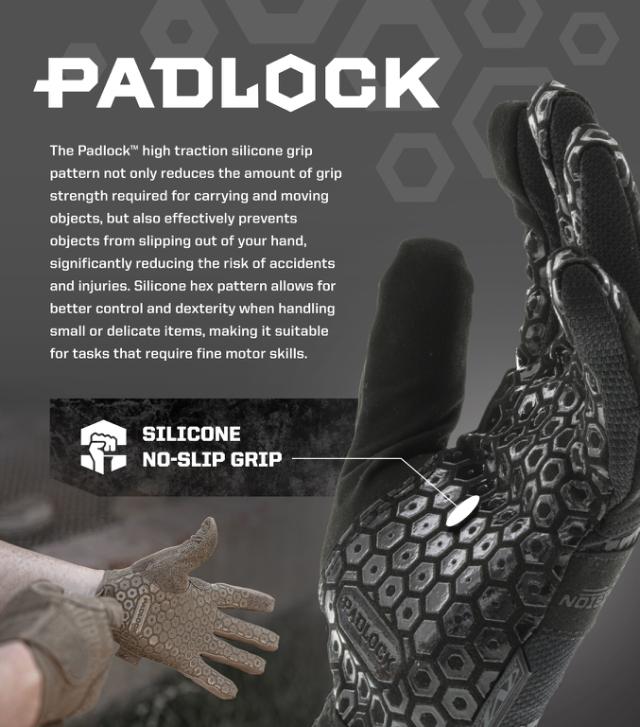 - Padlock™ sklisikkert silikongrep i håndflaten.
