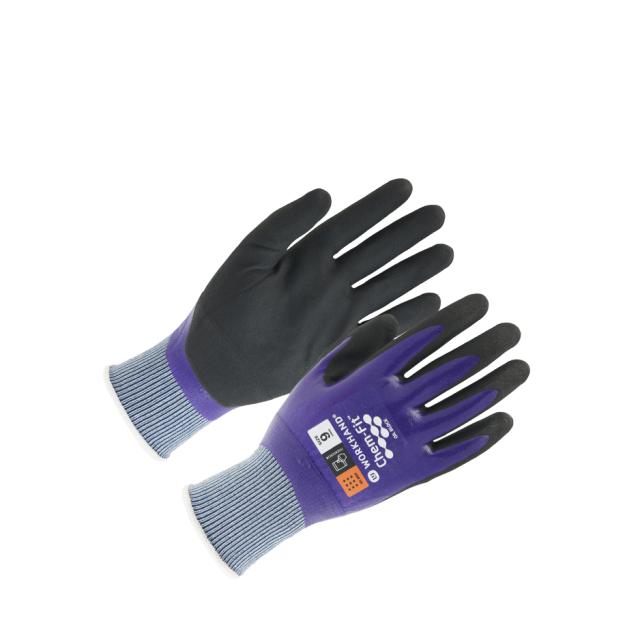 Workhand Chem-Fit® er et hanskeprogram som er vann- og oljetett med et unikt anti-skli grep. Den heldyppede versjonen holder hånden tørr. Hanskene er laget på former med ergonomisk design for nordiske hender. Den ekstremt fleksible og komfortable hansken passer perfekt, og gir utmerket fingerfølelse slik at du enkelt kan utføre sprengningsarbeid, koble til rør og bruke håndverktøy. Hansken er allsidig og kan også brukes til fiskeindustrien, marineservice, olje- og gassindustrien.