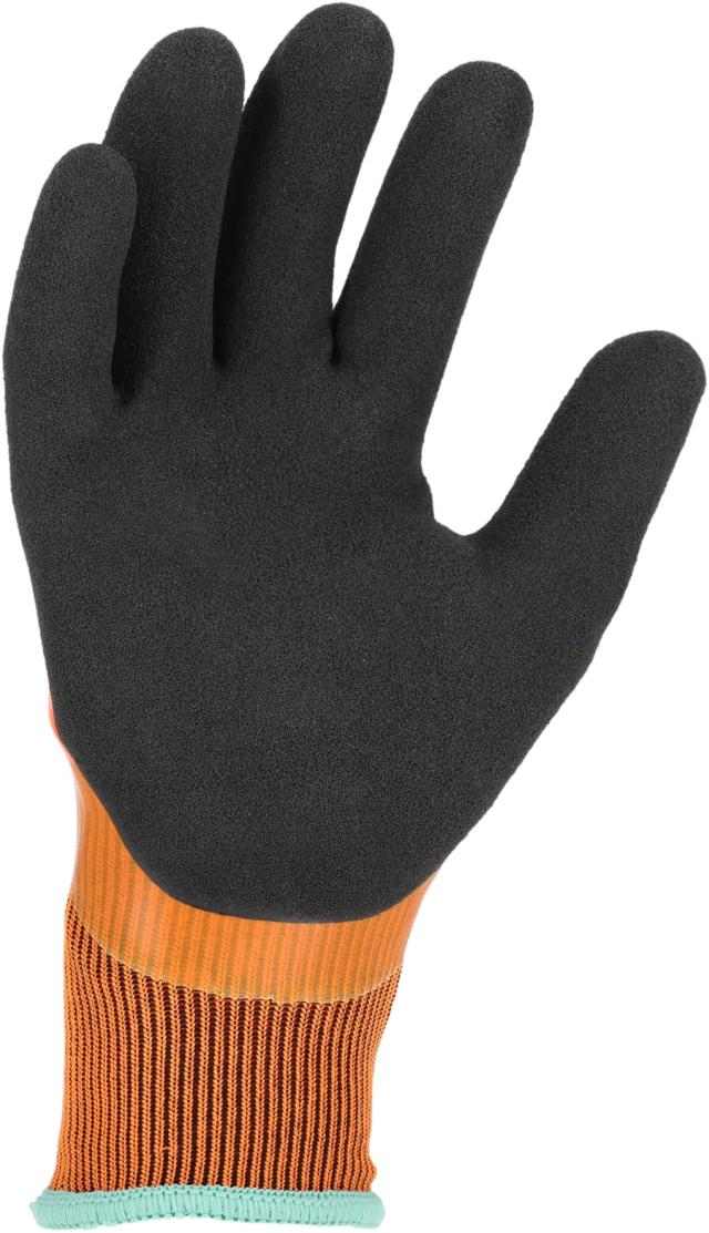 En svært myk og komfortabel lateksdyppet hanske for allsidig arbeid. Vinterfôret og vanntett dypping egnet for våte miljøer. Godkjent for næringsmiddelhåndtering. Synlighetsfarge. Tåler kontaktvarme opp til 250 °C. En mer effektiv energibruk kombinert med utnyttelse av solenergi i produksjonen har redusert CO2-utslippet med 60 g/par. En mer effektiv vaskeprosess har redusert vannforbruket med 70 % (6 liter per par).