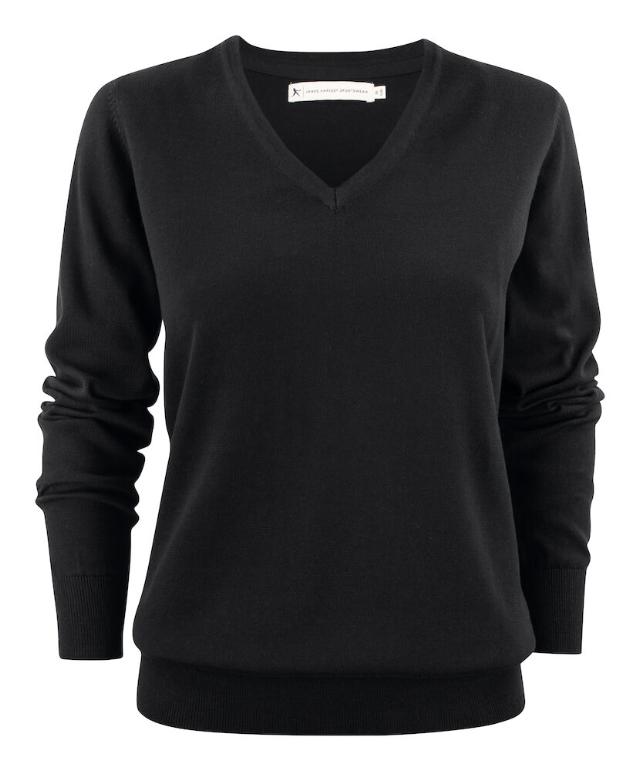 Finstrikket genser med V-hals til dame. 1x1 ribb i nederkant og på ermene.