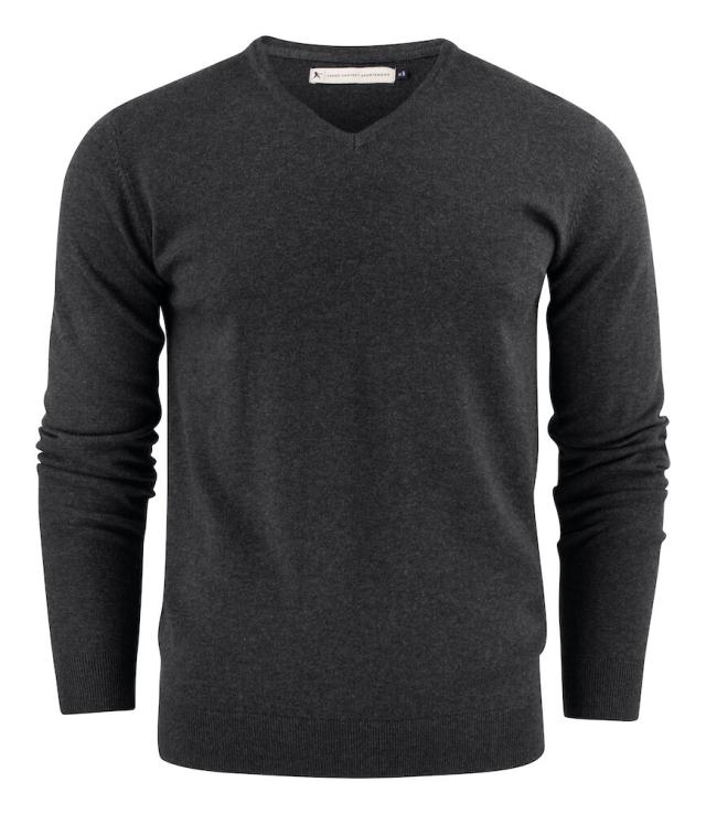Finstrikket genser med V-hals til herre. 1x1 ribb i nederkant og på ermene.