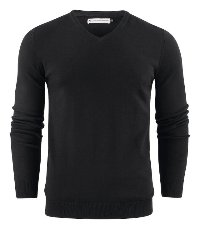Finstrikket genser med V-hals til herre. 1x1 ribb i nederkant og på ermene.