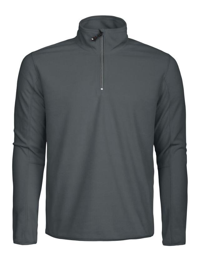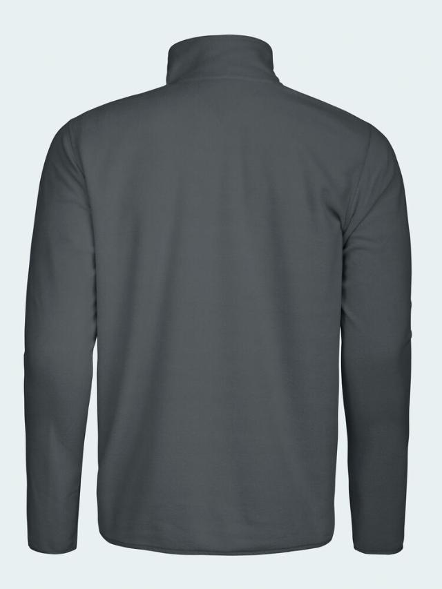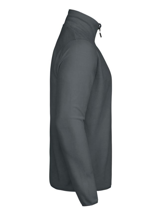 Behagelig microfleece-trøye. Perfekt som lag-2. Kort glidelås med tofarget YKK-glidelås. Dekorativ strikk i flatlock og rib i nederkant og ermene. Alt ton-i-ton.