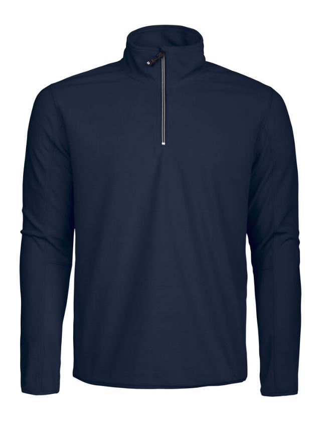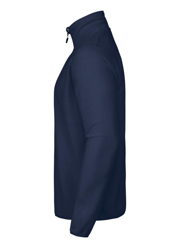 Behagelig microfleece-trøye. Perfekt som lag-2. Kort glidelås med tofarget YKK-glidelås. Dekorativ strikk i flatlock og rib i nederkant og ermene. Alt ton-i-ton.