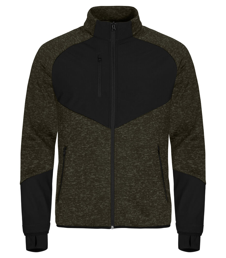 En varm, strikket fleecejakke med felter av softshell. Tre ytterlommer med glidelås og to store innerlommer. Elastisk mansjett med tommelhull på innsiden av ermene. Sammenleggbart refleksbånd. Hank og avtagbar etikett i nakken.