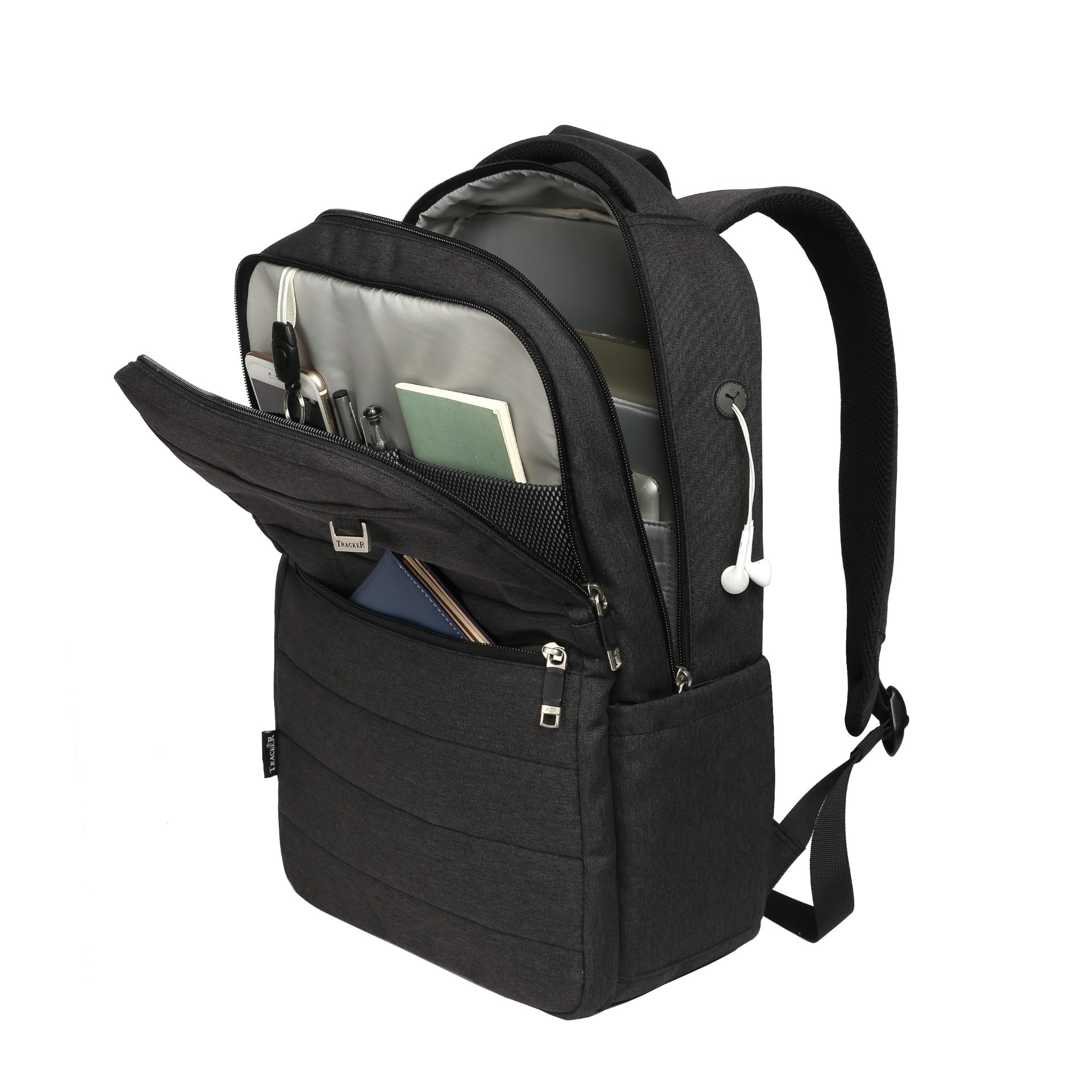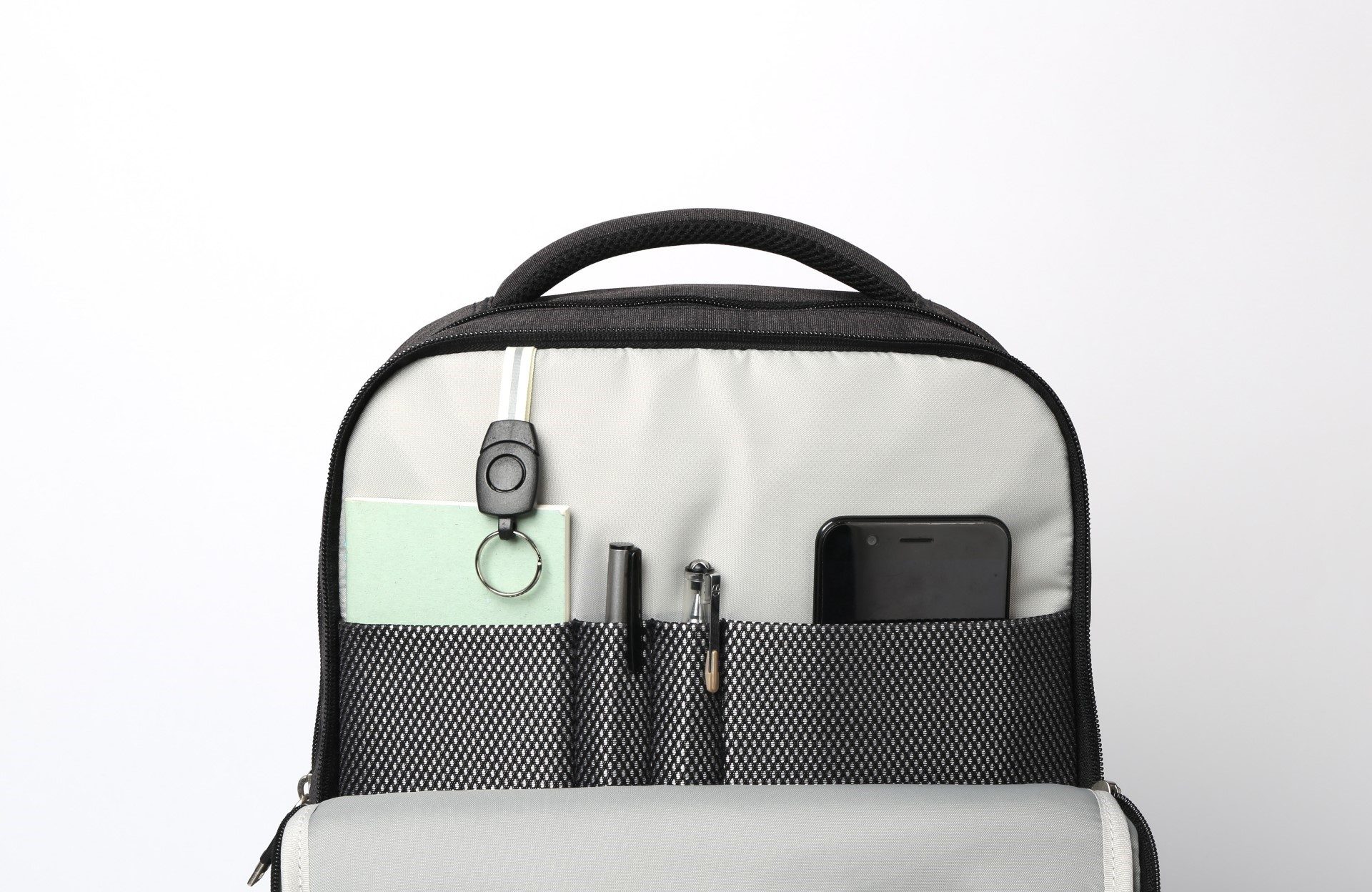 Denne praktiske PC-sekken er designet for en travel hverdag og kombinerer god kapasitet med smart organisering. Sekken har to romslige hovedrom samt en utvendig lomme som gir rask tilgang til det du bruker mest. Innvendig finner du en egen lomme til verdisaker og flere organiseringslommer som holder småutstyr, ladere og tilbehør på plass. Det låsbare hovedrommet gir ekstra sikkerhet når du er på farten, mens den integrerte kortlommen på bærestroppen gjør det enkelt å ha adgangskort eller reisekort lett tilgjengelig. Sekken har også egen utgang for ørepropper eller mobillader, slik at du kan bruke elektronikken din uten å åpne sekken, og praktiske flaskelommer på utsiden for drikke eller annet du vil ha lett tilgjengelig.