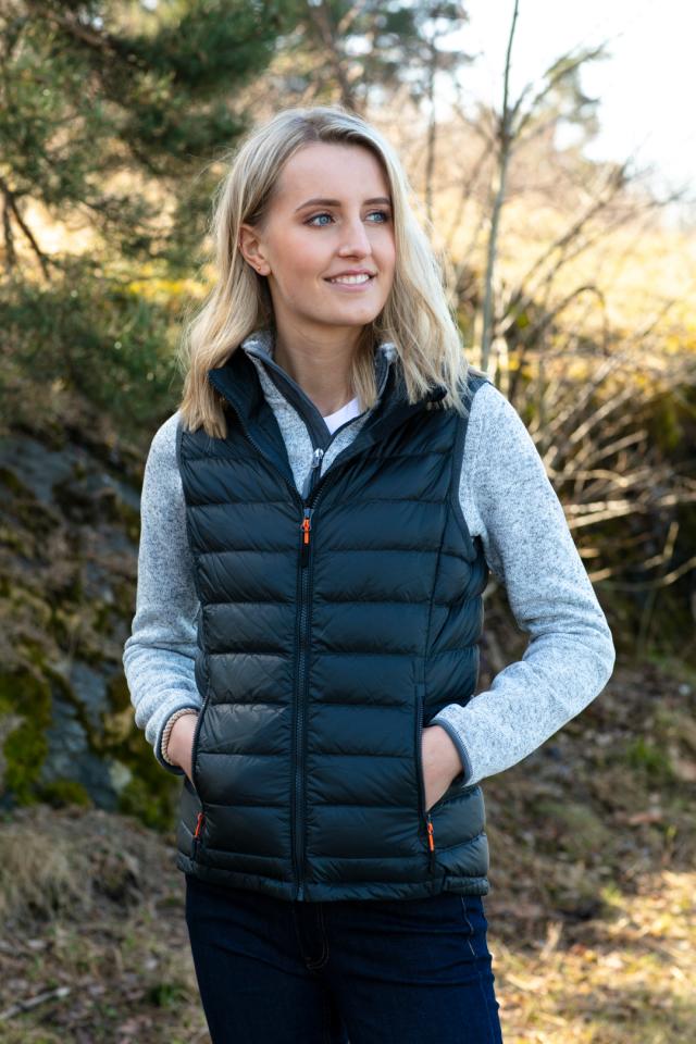 Superlett og allsidig dunvest til tur, trening og fritid, som kan brukes året rundt. Vesten er svært komprimerbar, og er dermed ypperlig å ta med seg på tur. Perfekt isolasjonsplagg. Svært komprimerbar med egen pose for pakking. RDS-Sertifisert. Impregnert med Bionic Finish Eco.