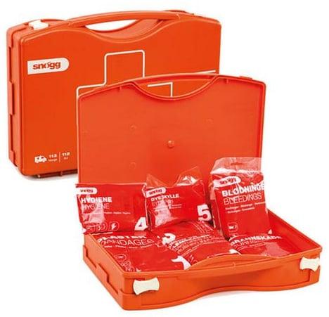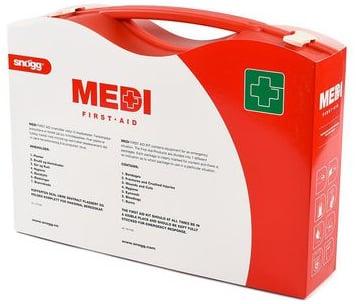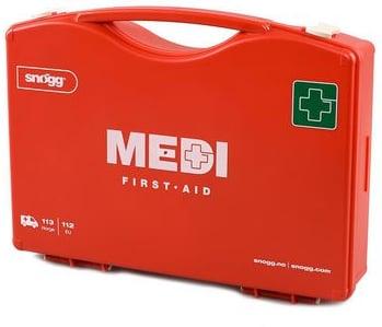 Snøggkofferten Medi er en førstehjelpskoffert i medium størrelse. Kofferten er beregnet for inntil 10 personer. Førstehjelpskoffert for turbusser og som en beredskapskoffert for små bedrifter, kontor og forretninger.