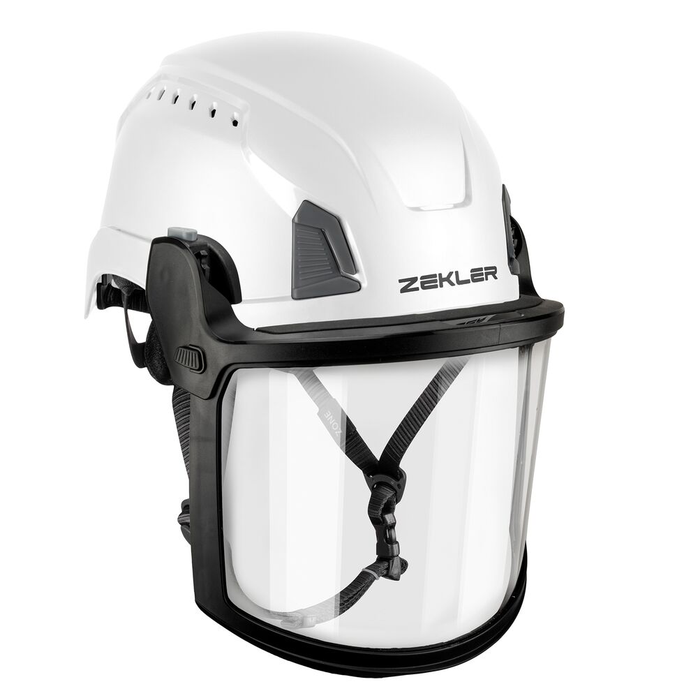 Heldekkende visir for vernehjelmene Zekler Zone Standard, Zekler Zone Mips og Zekler Zone Electro. Visiret er svært enkelt å montere med inkluderte klikkfester og har anti-dugg egenskaper. Det har høy mekanisk slagfasthet samt motstand mot væsker og dråper. Reservevisir er tilgjengelig.
