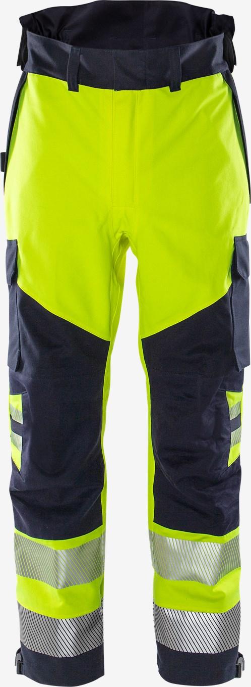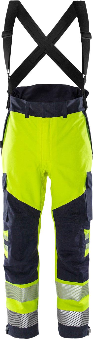 Flammebeskyttet multinorm skallbukse i vanntett, vindtett og pustende materiale. Komfortable bukser med iboende flammebeskyttelse. Utstyrt med knelommer og elastiske seler.