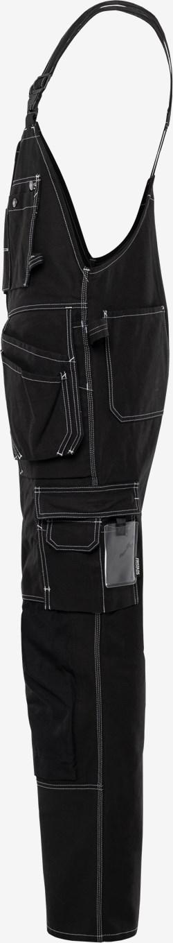 Justerbare seler med elastisk del / Toveis glidelås foran / 2 brystlommer med pennelomme og 2 knapper og løkker for kniv / 2 innfellbare, CORDURA® forsterkede løsthengende lommer, den ene med ekstra lomme, den andre med 3 små lommer og verktøyløkker / 2 store lommer foran og bak / 2 hammerløkker, en justerbar / Tommestokklomme med pennelomme og knapp og løkke for kniv / Benlomme med mobiltelefonlomme og skjult ID-kortlomme / CORDURA®-forsterkede knelommer med innvendig åpning / Høydejustering for kneputer i knelomme / Godkjent i henhold til EN 14404 sammen med kneputer 124292 / ØKO-TEX®-sertifisert.