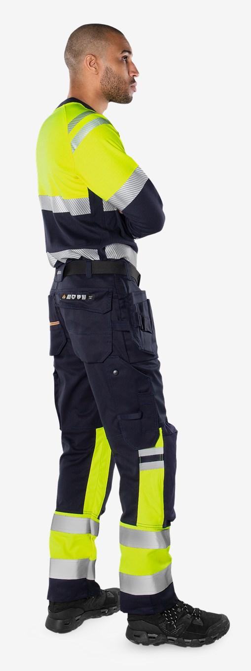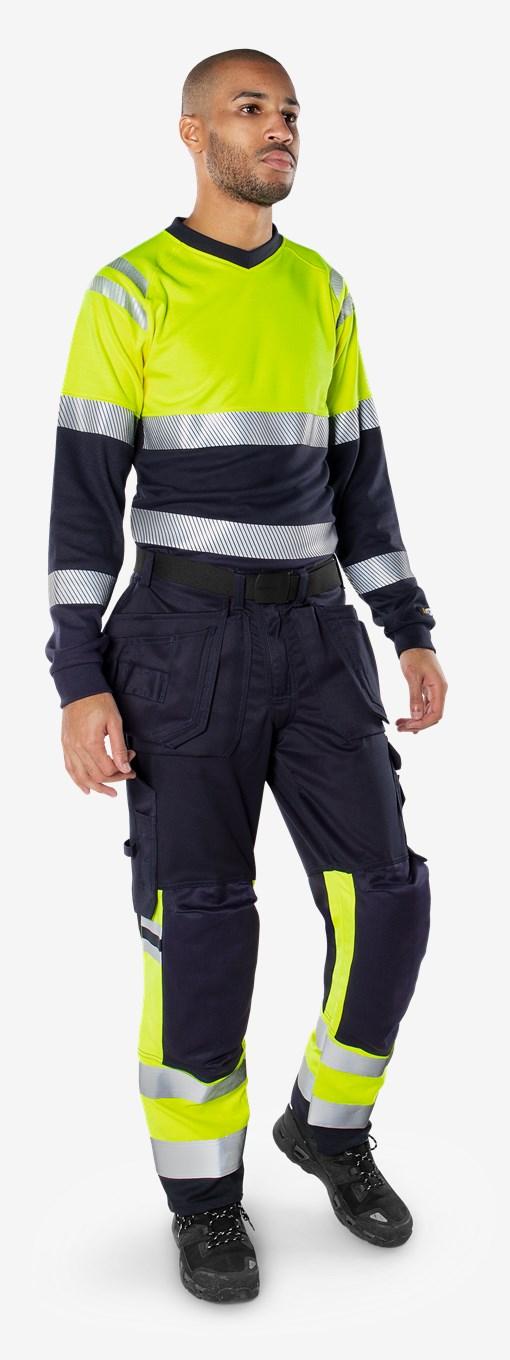 Flammebeskyttende t-skjorte med høy synlighet elektrisk lysbue-beskyttelse. Myk t-skjorte med iboende flammebeskyttelse og behagelig reflekterende tape i stretch.