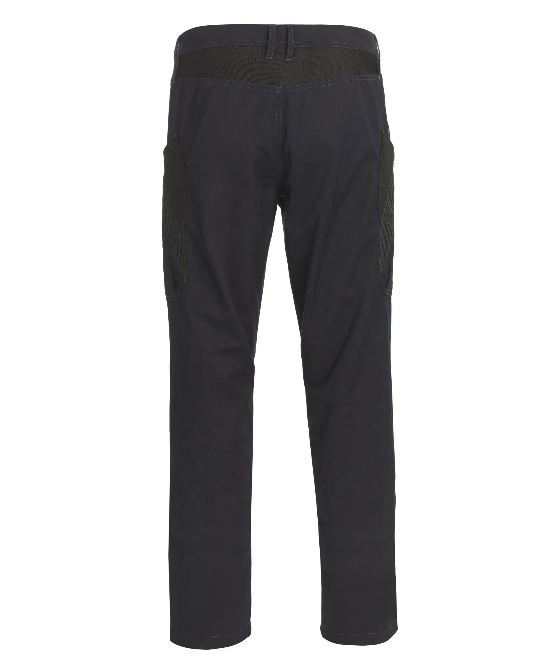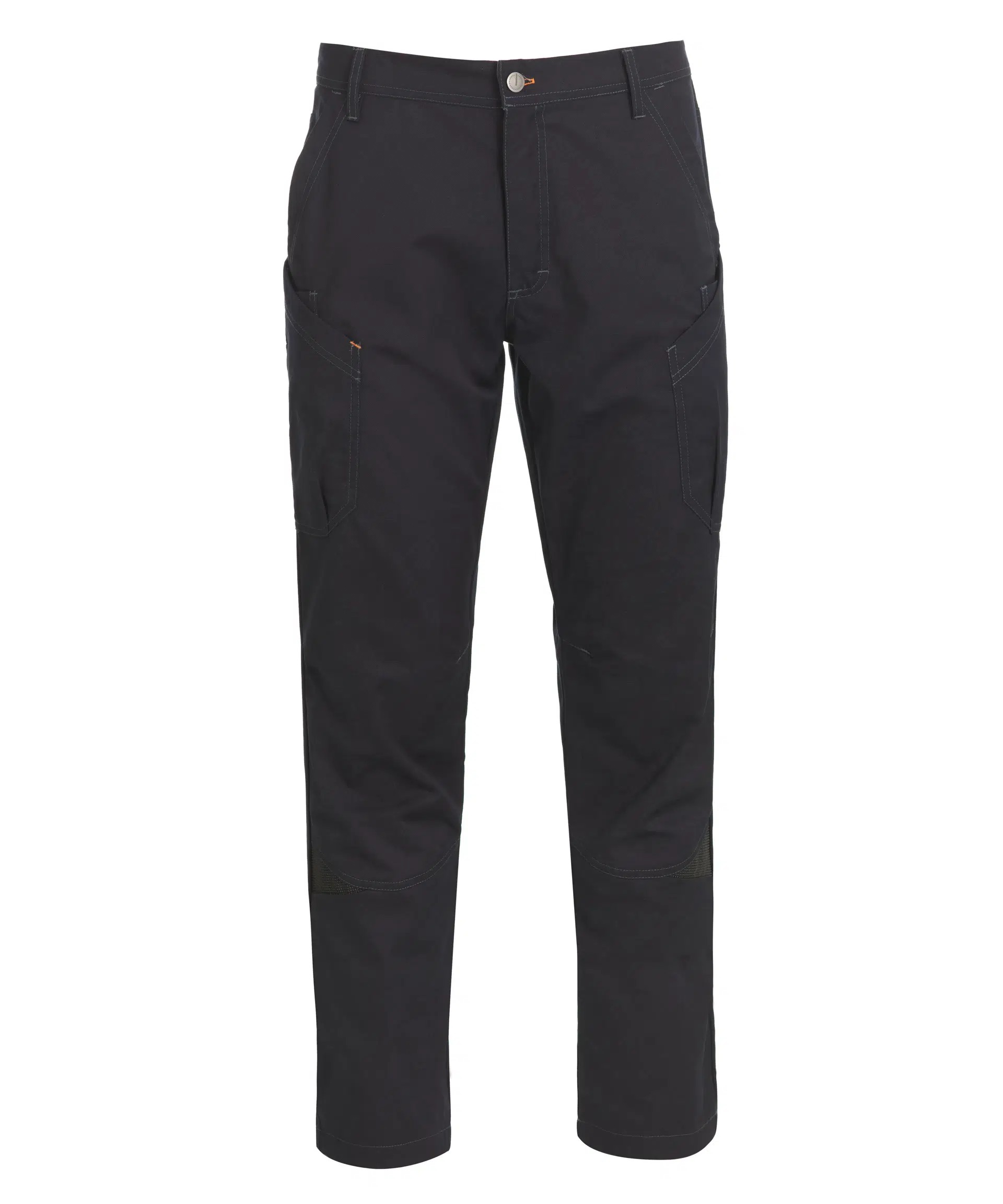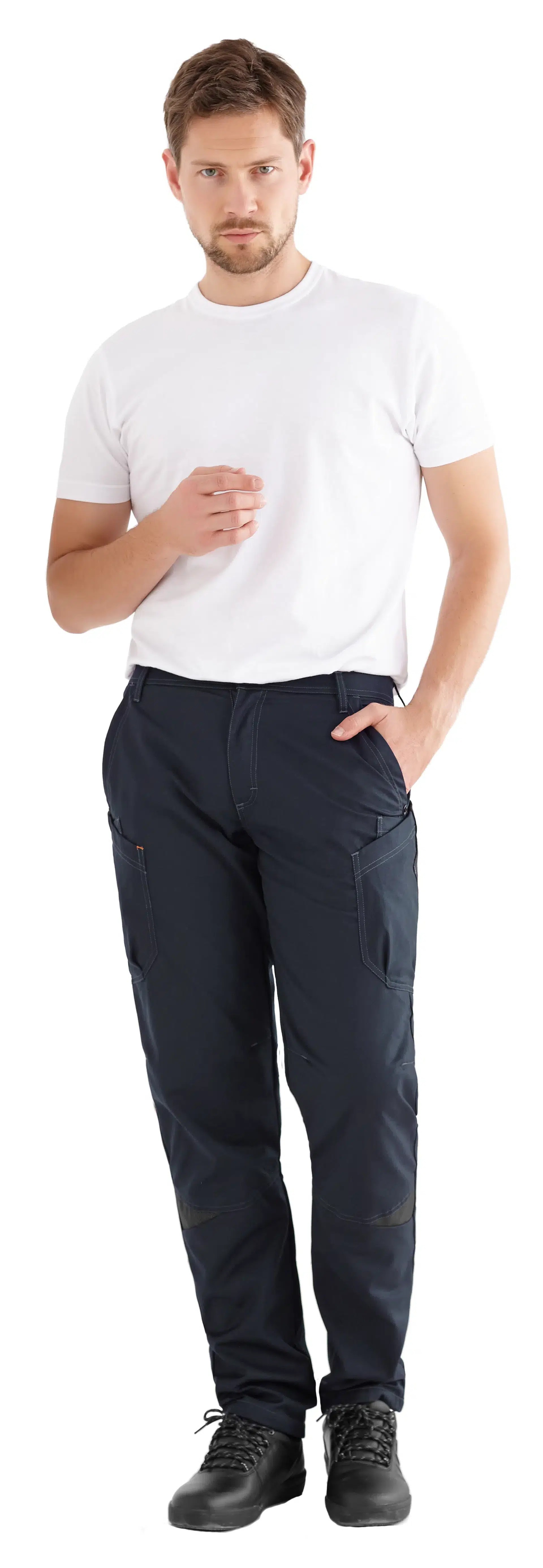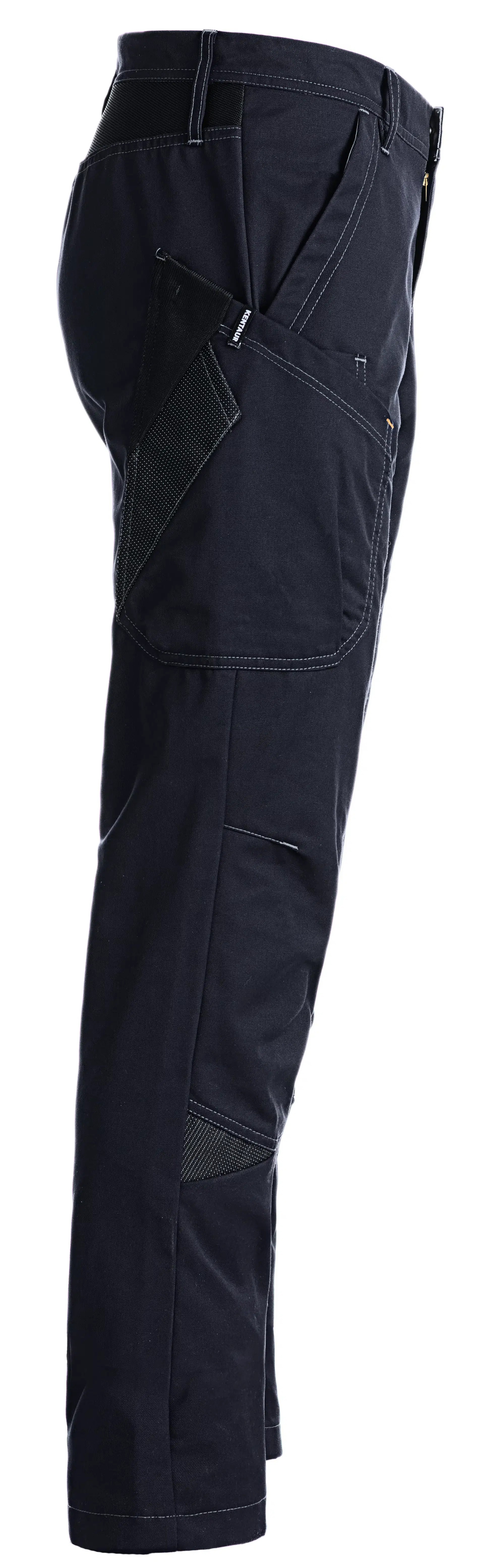 Buksen er utviklet for deg som jobber aktivt og trenger både komfort og funksjonalitet gjennom hele dagen. Buksen har beltestropper i livet og en fleksibel, pustende strikk i korsryggen som gir ekstra bevegelsesfrihet og god passform. De to skrå sidelommene gir enkel tilgang til det du trenger mest, mens glidelås i gylfen sørger for en klassisk og praktisk lukking. På lårene finner du ergonomiske lårlommer med skjult trykknapp, i tillegg til innvendig mobil- og linjallomme for smart organisering av verktøy og tilbehør. Reflekterende detaljer øker synligheten i arbeidshverdagen, og det ergonomiske snittet ved knærne gir deg større komfort og bevegelse i krevende arbeidsstillinger. Buksen har integrert ekstra benlengde på 5 cm som kan felles ned ved behov, noe som gjør den fleksibel også etter kjøp. Innerbenslengden er 82 cm, og plagget er designregistrert – et kvalitetsstempel på både utforming og funksjon.
