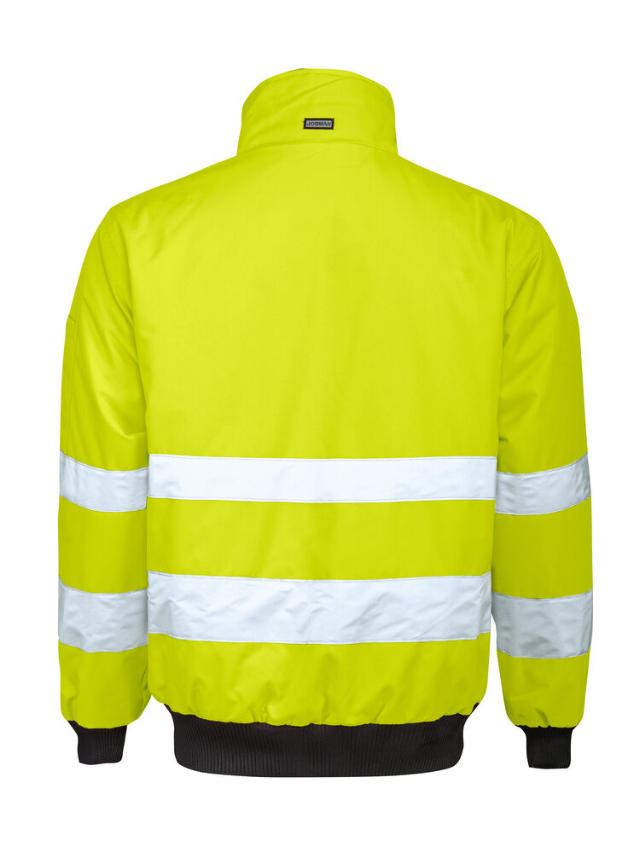 Pilotjakke i slitesterk vannavstøtende polyester med smidig quiltfôr. Mykt teddyfôr i kragen. Brystlommer og ermelomme med glidelås. ID-kortholder i brystlommen. Frontlommer med trykknapp. Innerlomme med rom for mobiltelefon. Sertifisert i varselklasse 3 ifølge EN ISO 20471.