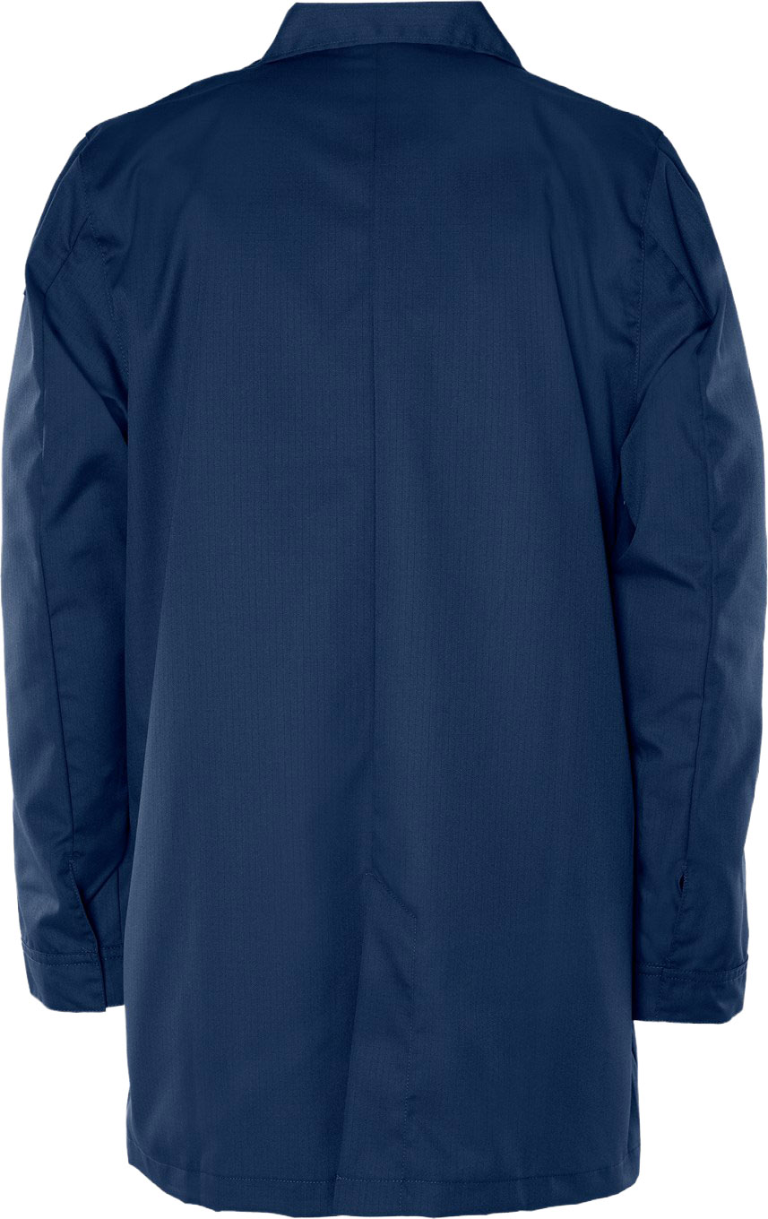 ESD-frakk 3080 ELP. Komfortabel frakk som reduserer risikoen for elektrostatisk utladning for personer som arbeider i EPA (elektrostatisk beskyttede områder). PFAS-fri. PFAS-fri. Skjulte trykknapper foran / Brystlomme med pennlomme, klaff med trykknapp / 2 lommer foran med klaffer med trykknapper / Splitt nederst midt bak / Justerbar ermeavslutning med trykknapp / Godkjent i henhold til IEC 61340-5-1 / OEKO-TEX®-sertifisert.