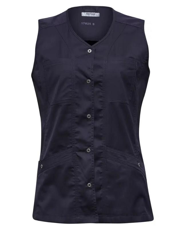 Kentaur sin damevest er et praktisk og stilfullt plagg laget av resirkulert polyester fra PET-flasker, noe som gjør den til et miljøvennlig valg. Den naturlige strekken på 4 % gir god bevegelsesfrihet og komfort. Vesten har trykknapper som sikrer enkel åpning og lukking. To brystlommer med "pencil" stropp gir plass til penner eller småverktøy, mens to hoftelommer med trykknapper tilbyr ekstra oppbevaringsmuligheter. En innvendig separat lomme i hoftelommen holder mobiltelefonen trygg og lett tilgjengelig. Den justerbare ryggen lar deg tilpasse passformen etter behov, og nøkkelstroppene bidrar til å holde viktige ting på plass. Spalter i sidene gir økt bevegelsesfrihet. Med sitt funksjonelle design og fokus på bærekraft, er denne damevesten et utmerket valg for enhver anledning.