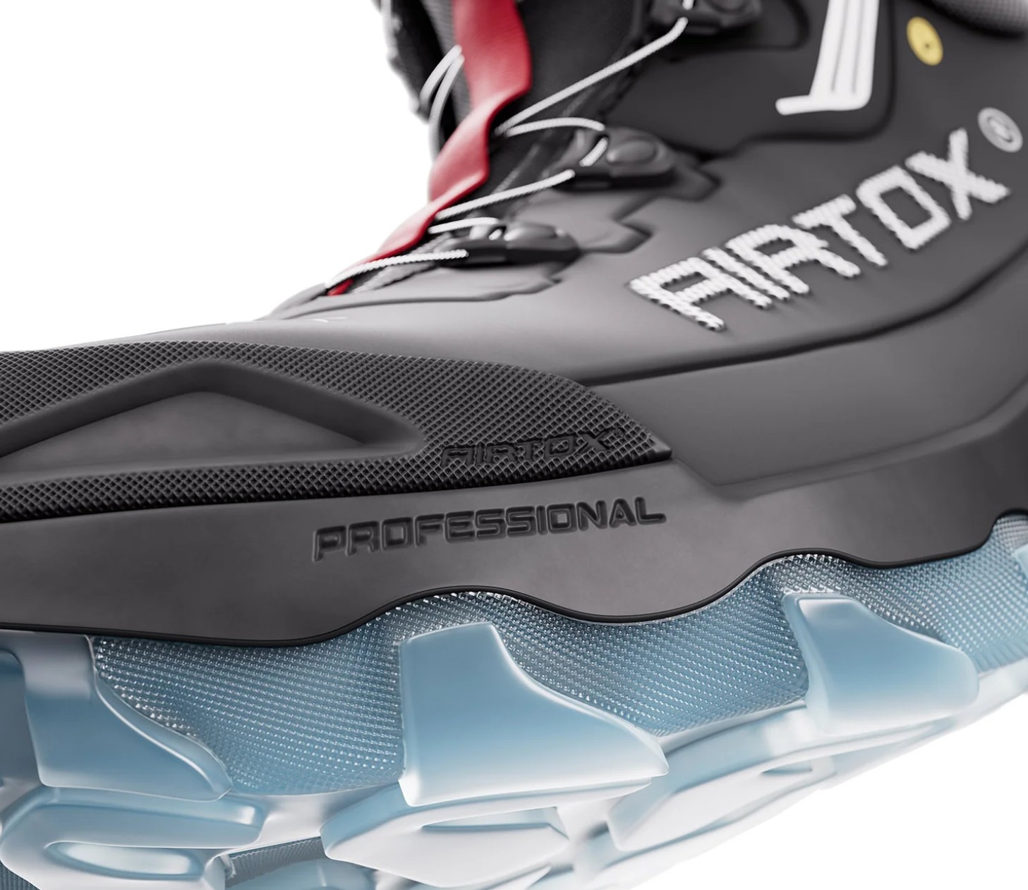 NY, lett sikkerhetsstøvel med grov såleprofil i gjennomsiktig TPU. En høyteknologisk sikkerhetsstøvel designet med banebrytende funksjoner for maksimal ytelse og komfort. Kjernen er den revolusjonerende Whitelayer®-spikertramp – like sterk som stål, men myk som stoff – som tilbyr enestående fleksibilitet og lett sikkerhet. Støvelen er utstyrt med en spesialdesignet ergonomisk tåhette i aluminium, som sikrer både beskyttelse og en sømløs, komfortabel og bred passform. Overdelen er laget av et enkelt stykke Nanotech-mikrofiber, noe som gjør den lett, slitesterk og vannavstøtende.Sålen er laget med en avansert teknologi, der materialet i flytende form sprayes på skoen, samtidig som luft integreres ved hjelp av den nyeste og mest avanserte robotteknologien på markedet. Med sin perfekte passform og robuste konstruksjon er denne støvelen bygget for å håndtere praktisk talt ethvert miljø med letthet.