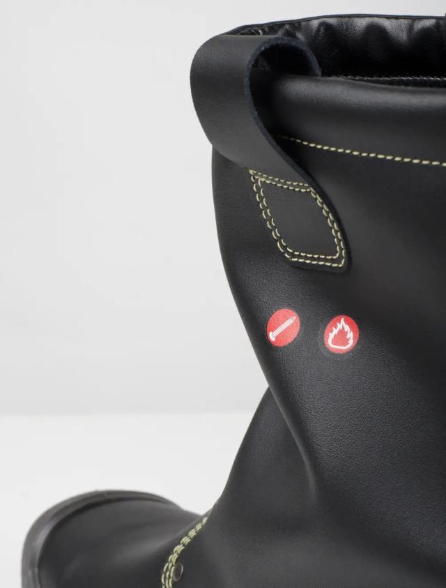 Komfortabel høy vernesko med høyeste beskyttelsesnivå, for varmt arbeid med egenskaper som bred lest og varmebestandig overdel og yttersåle. Perfekt for sveisere. Spesialbehandlet skinn med varmebestandig para-aramidtråd i sømmene, som gir varmebestandighet opptil 400 °C i 30 minutter. Spikertrampbeskyttelse i stål, vernetå i aluminium og doble støtdempingssoner i PORON® XRD® bidrar til å forebygge skader.