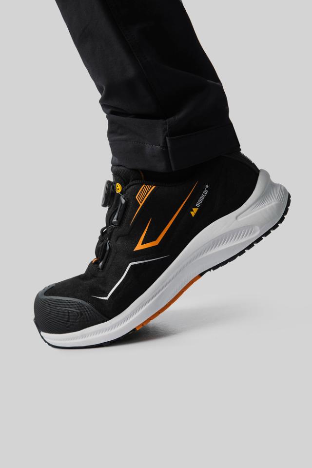 Recharge One vernesko har en bred passform med tåhette i kompositt og APT-spikebeskyttelse. Overdel i mikrofiber med gummiforsterkning. Utstyrt med EVA-mellomsåle, yttersåle i nitrilgummi og BOA® Fit System. Metallfri og ESD-godkjent.