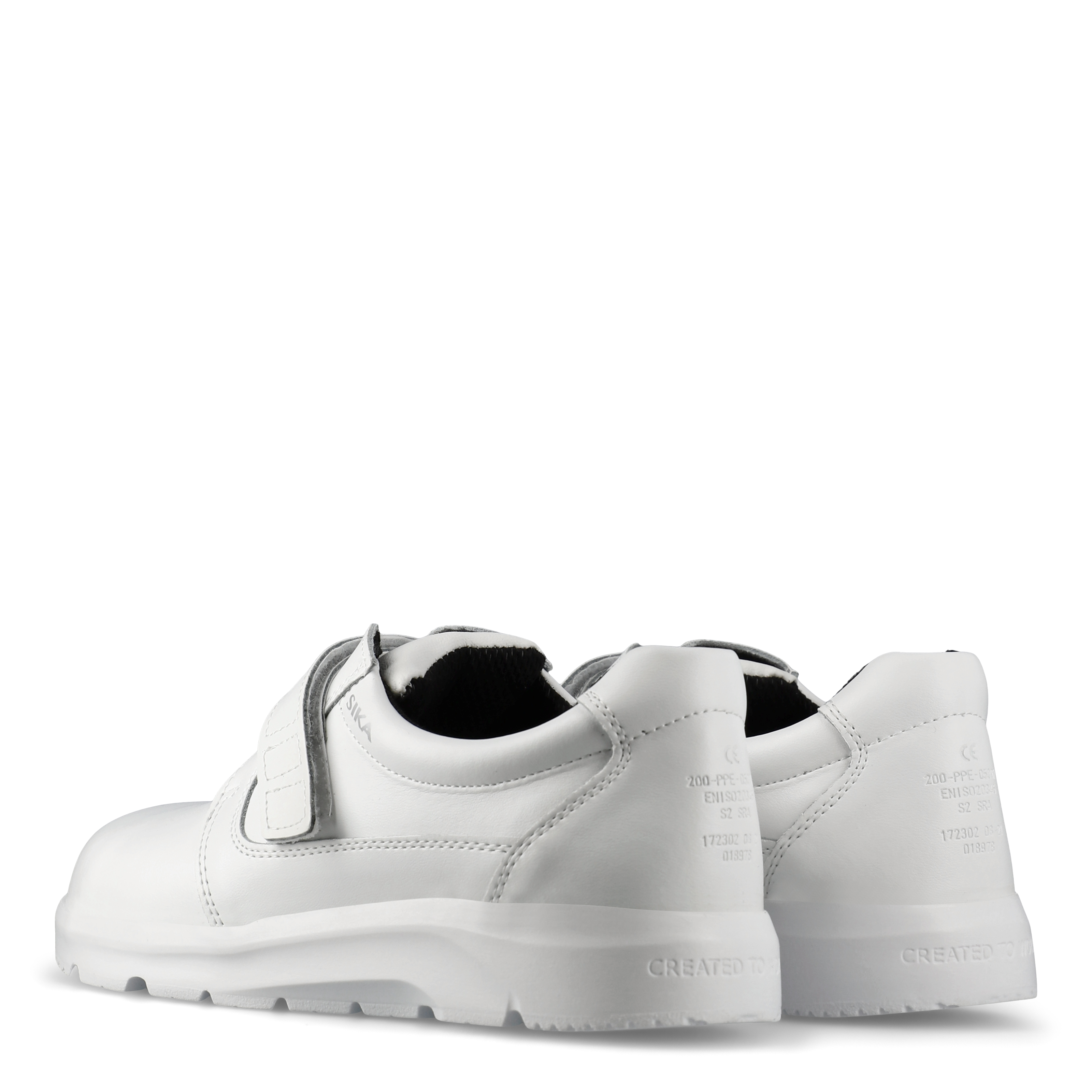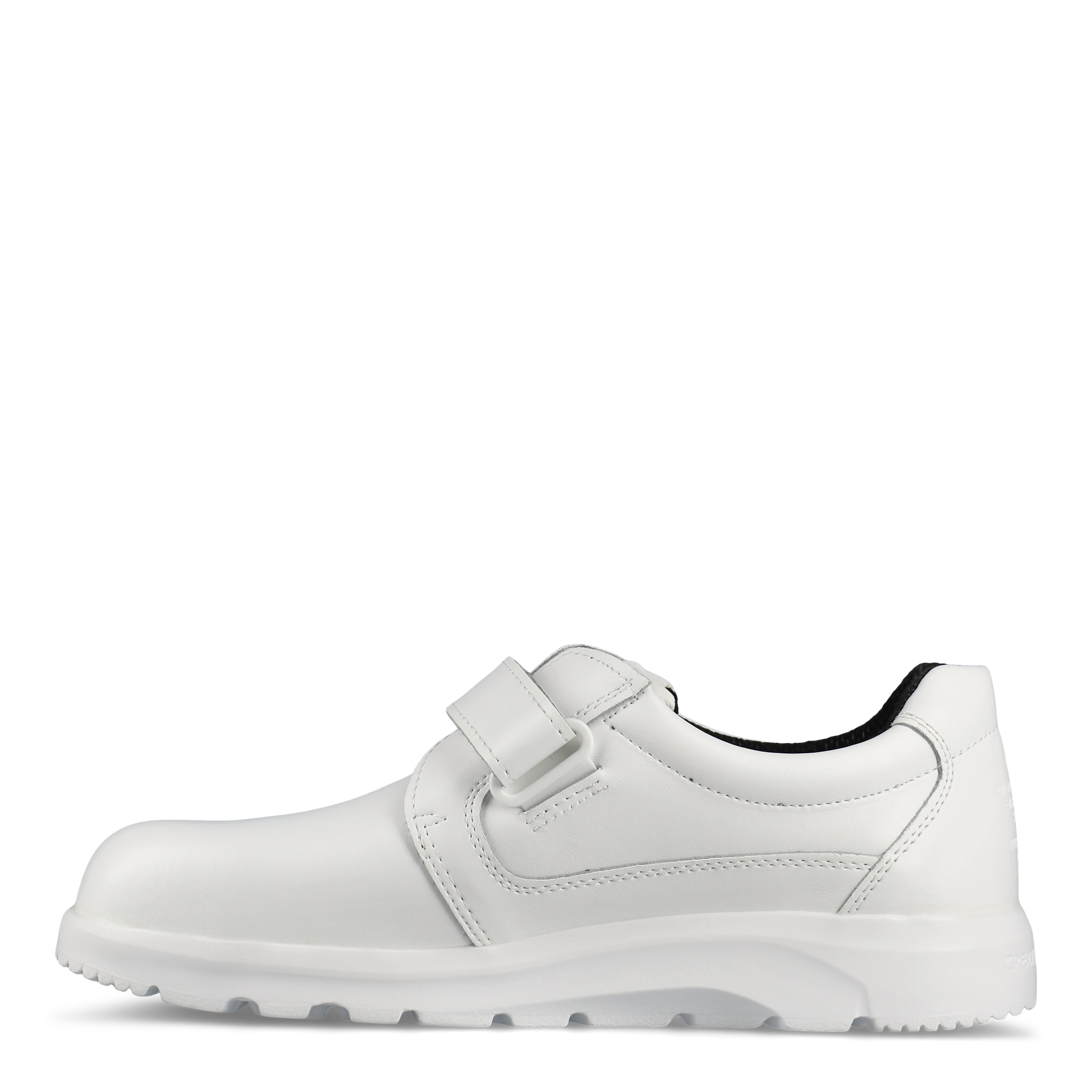 Lett, komfortabel og sklihemmende sko med tåbeskyttelse og borrelås. Av pustende og slitesterkt Permair® lær. Lett, fleksibel og robust sålekonstruksjon, som samtidig minimerer risikoen for vridningsskader. Støtdempende og pustende innleggssåle av lett og antibakterielt materiale, som er vaskbar ved 30 °C. Innerfôr av svettetransporterende, pustende og slitesterkt materiale.