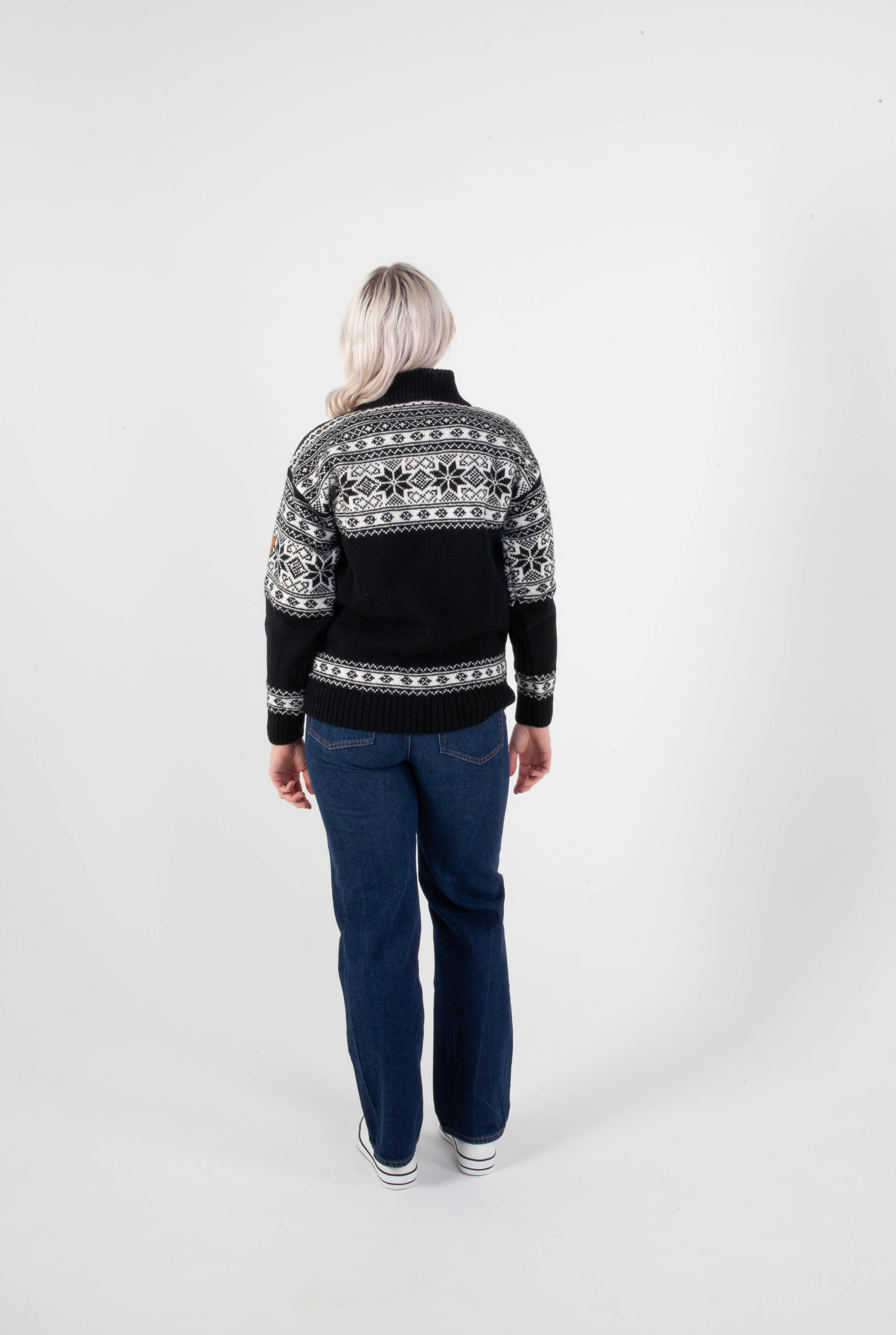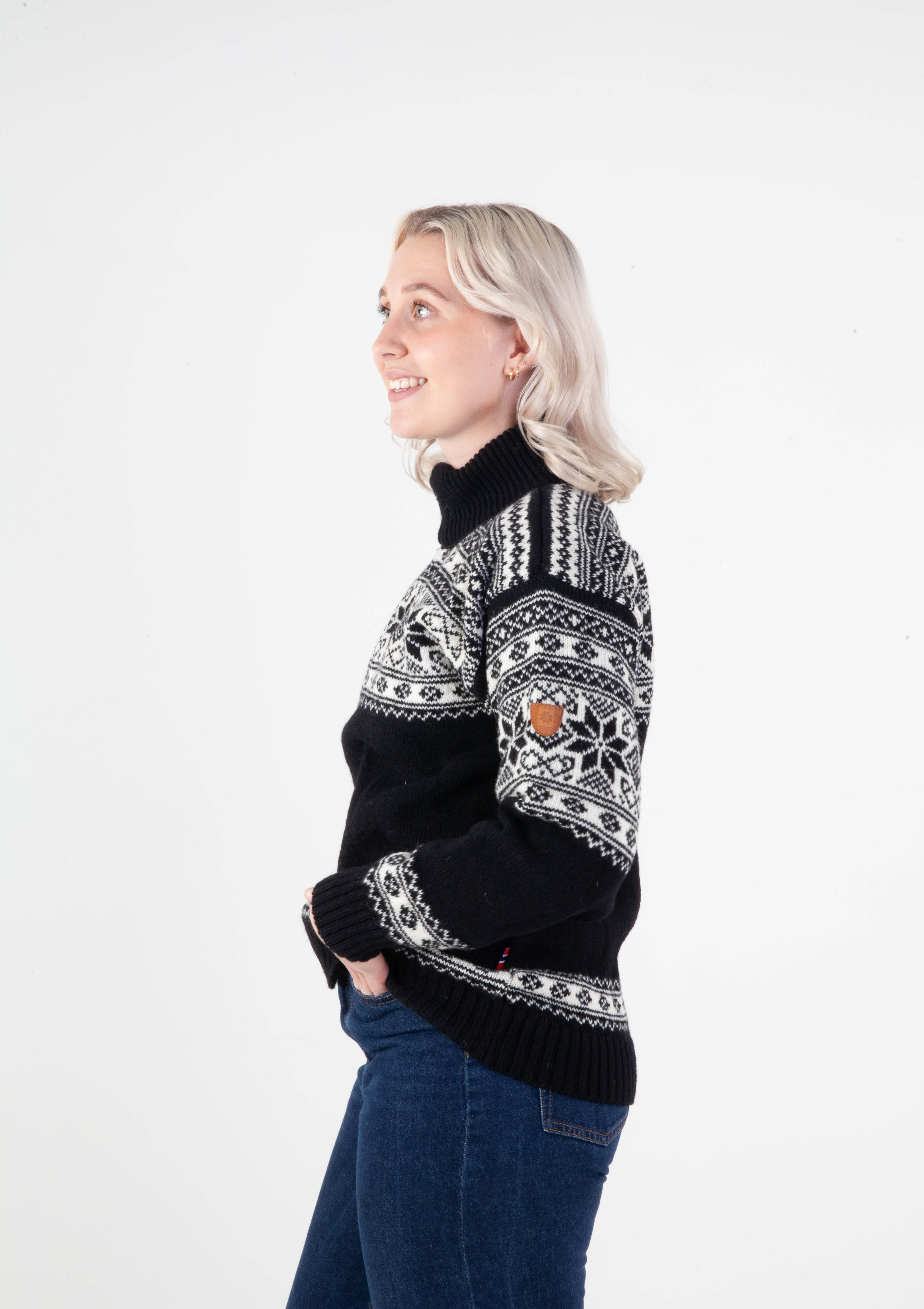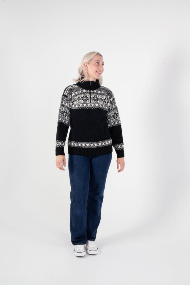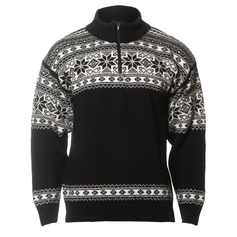 Snøstjerne-genseren er en varm ullgenser laget av 100 % norsk ull. Genseren har høy hals med glidelås og behagelig fleecefôr inni halsen. Mønsteret har vært brukt i tradisjonell norsk strikking i lang tid. Historien går helt tilbake til 1800-tallet. Vi har laget vår vri basert av det vakre mønsteret Snøstjerne-plaggene inspirert av det gamle strikkemønsteret. Unisex modell basert på herrestørrelse, anbefaler damer å gå ned en størrelse enn det man vanligvis bruker.