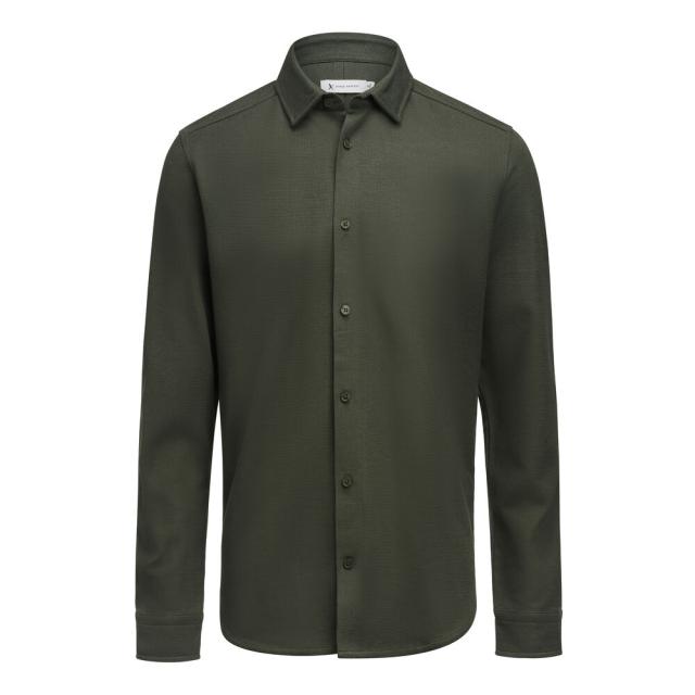 Hicksville er en moderne skjorte laget av et vaffelstrikket, strukturert stoff. Stoffet er laget av økologisk bomull og resirkulert polyester. Skjorten har en skjult button down-krage og ton-i-ton-knapper for et stilrent uttrykk.